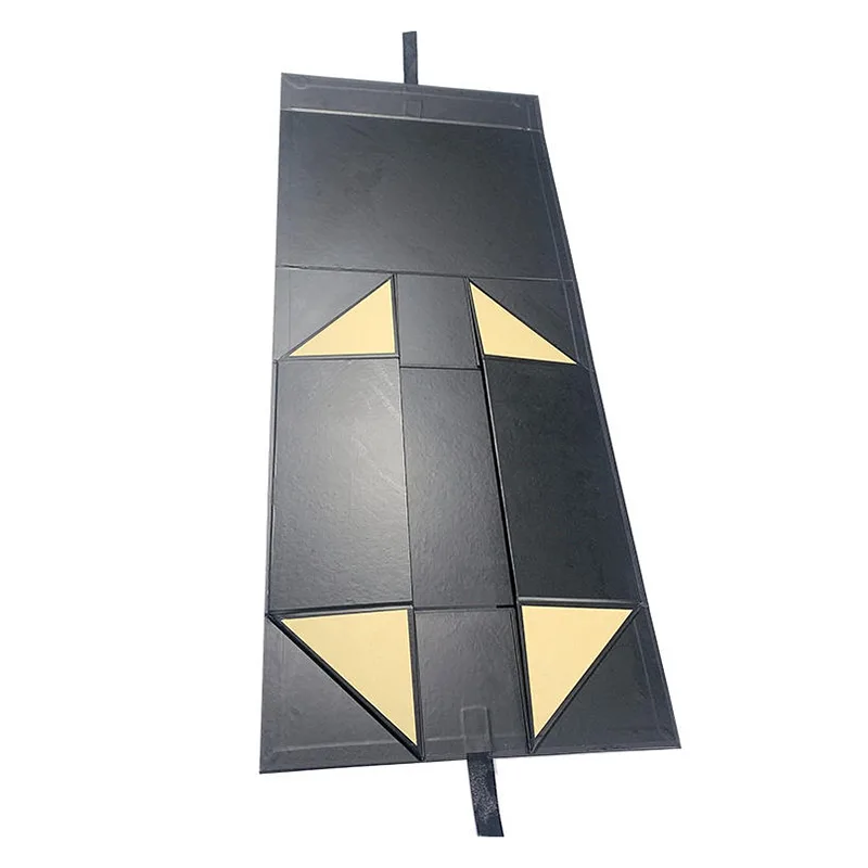 Lådan är gjord av mattsvart specialpapper, och insidan är fodrad med ljust guldkant. Konsistensen är stabil och avancerad. När den används för att hålla ömtåliga föremål som lädervaror, smycken och klockor, kan den mörka yttre lådan perfekt framhäva presentens känsliga struktur. Känslan av ceremoni vid öppning och stängning gör också gåvoutdelningen mer värdig. De övergripande visuella och praktiska effekterna är särskilt harmoniska och kompatibla.